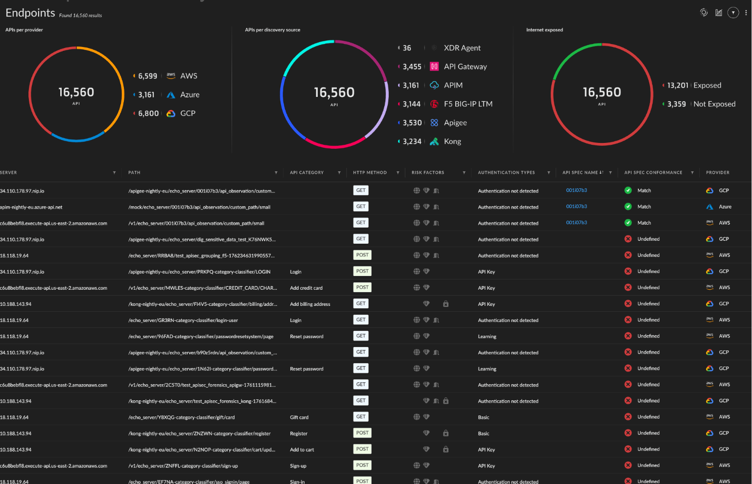 Gain full visibility across your entire API landscape to eliminate blind spots. Automatically discover and validate APIs across gateways, workloads and cloud environments. Uncover shadow, zombie and unmanaged APIs for complete visibility and control.