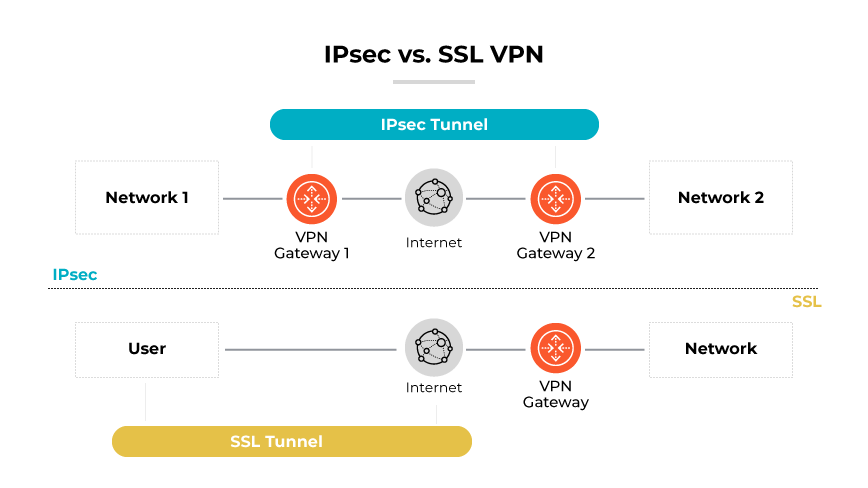 IPsec VPNs and SSL VPNs serve the same purpose of encrypting and securing communication over potentially insecure networks. However, they operate differently. IPsec VPNs encrypt at the network layer. They are ideal for connecting networks or devices with a high level of security, often requiring specialized client software to establish a connection.