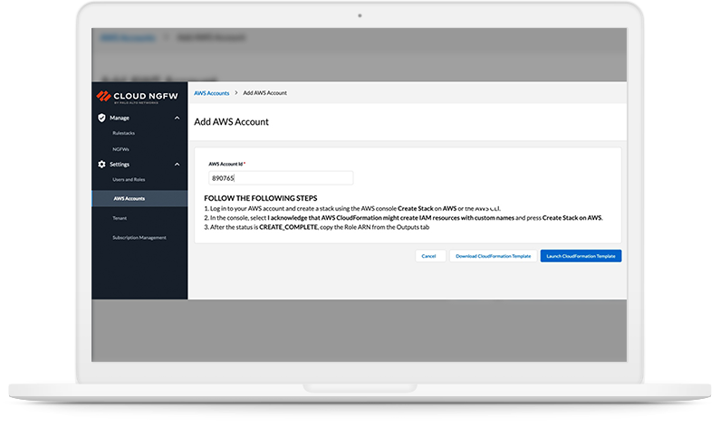 Skip lengthy deployment. Get up and running in minutes, even when setting up must-have rule stacks and automated security profiles. Plus, leverage security designed for the way you work with AWS: full integration into AWS onboarding, monitoring, logging and more.
