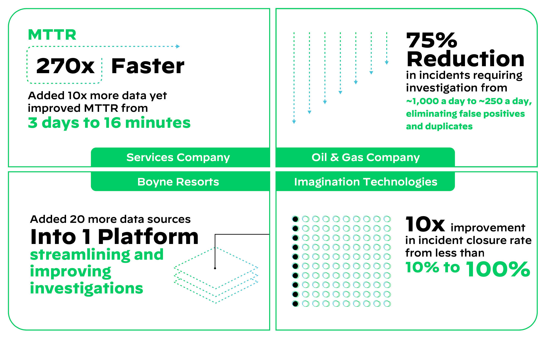 • Enables SOCs to ingest more data sources, while still improving response times from days to minutes
