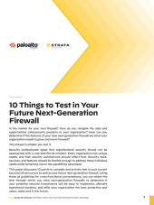 This paper discusses ten points to consider and actively test in your current security i nfrastructure and your future NGFW. Using these as guidelines for cross-functional conversations, you will expand the lens through which you can view your NGFW in order to determine if your potential security investments are easy to implement, alleviate workloads, and offer your organization the best protection and value, today and in the future.